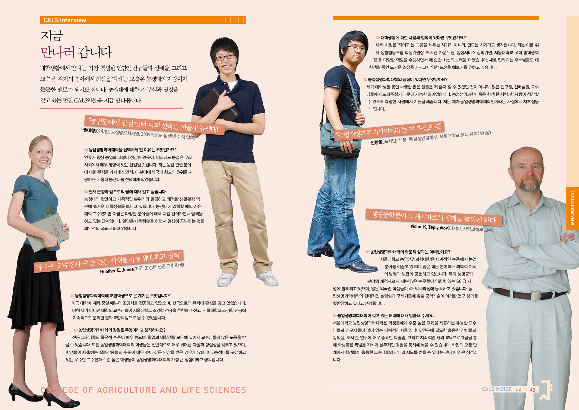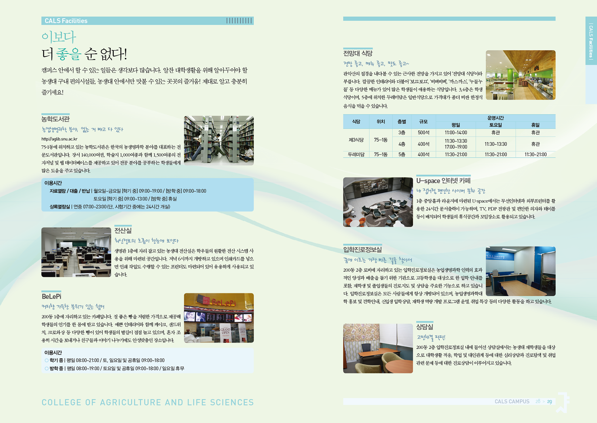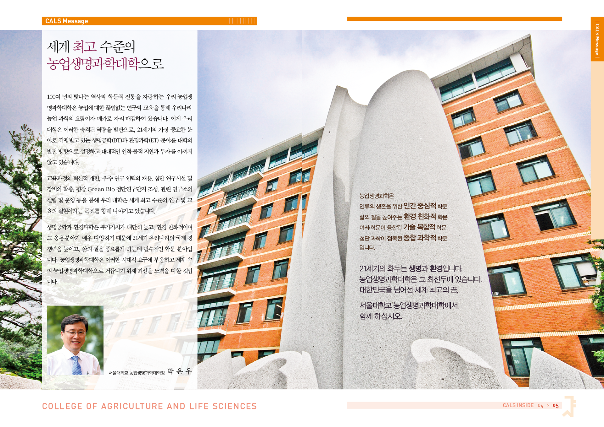 서울대학교 농업생명과학대학의 홍보용 책자 디자인.