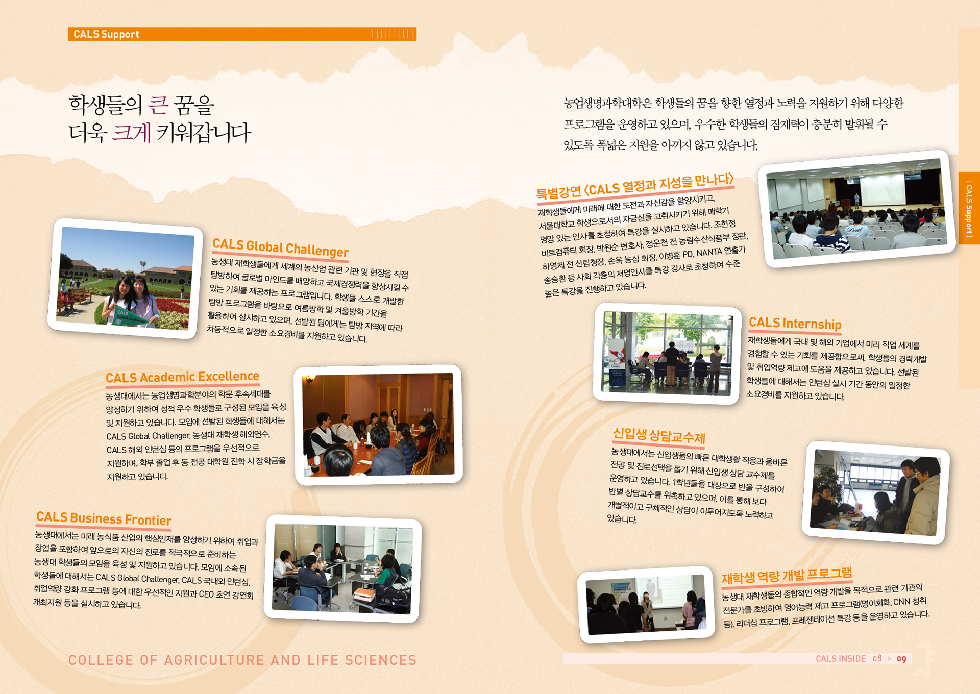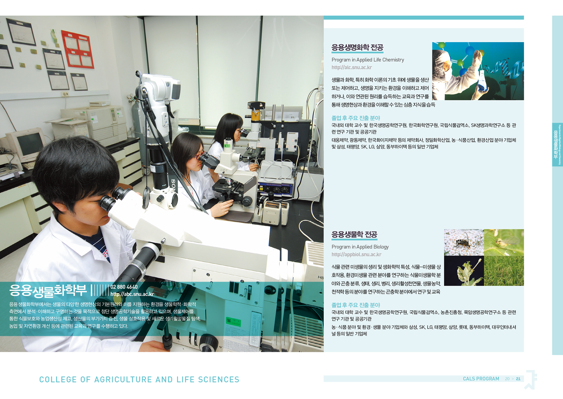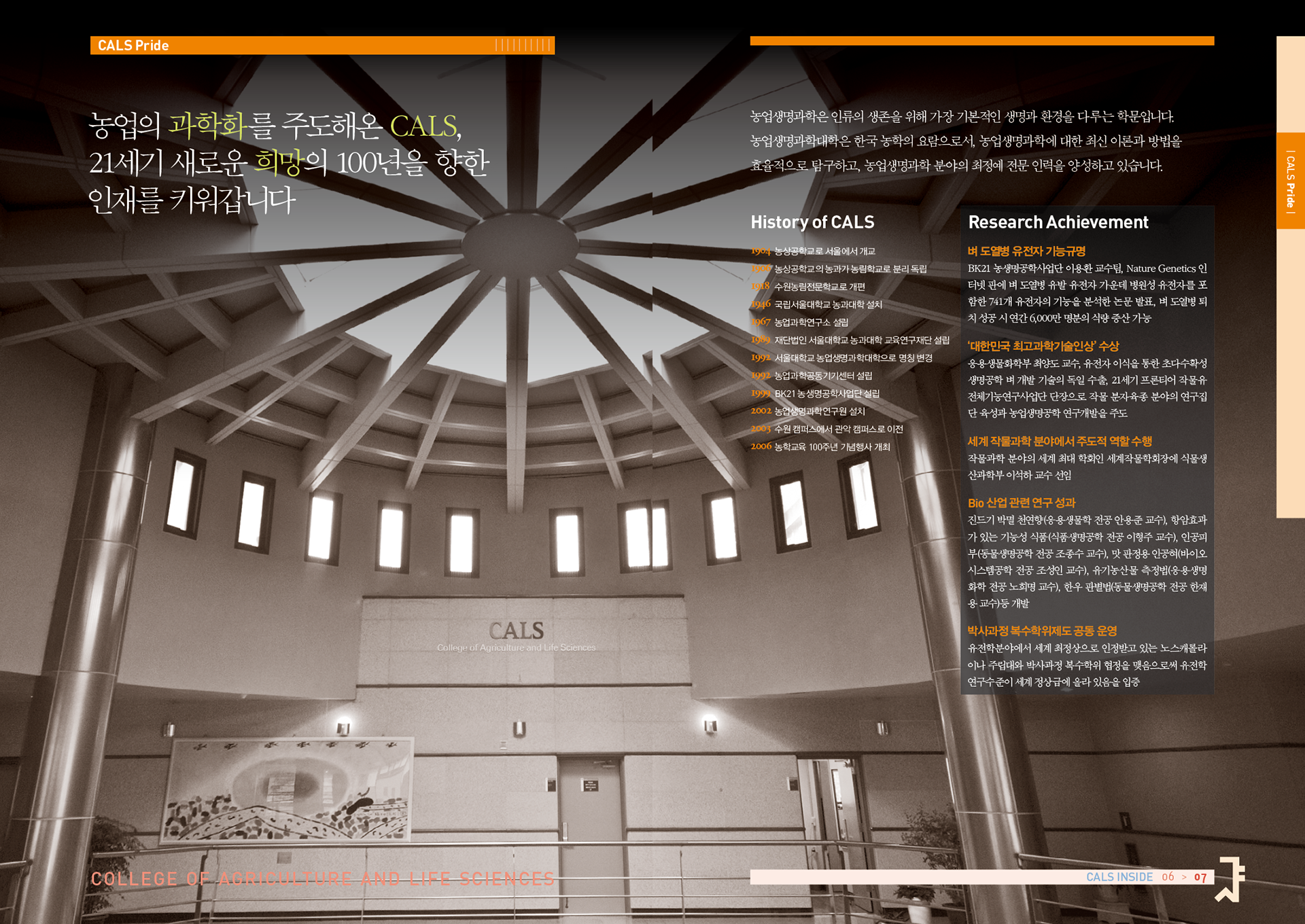서울대학교 농업생명과학대학의 홍보용 책자 디자인.
