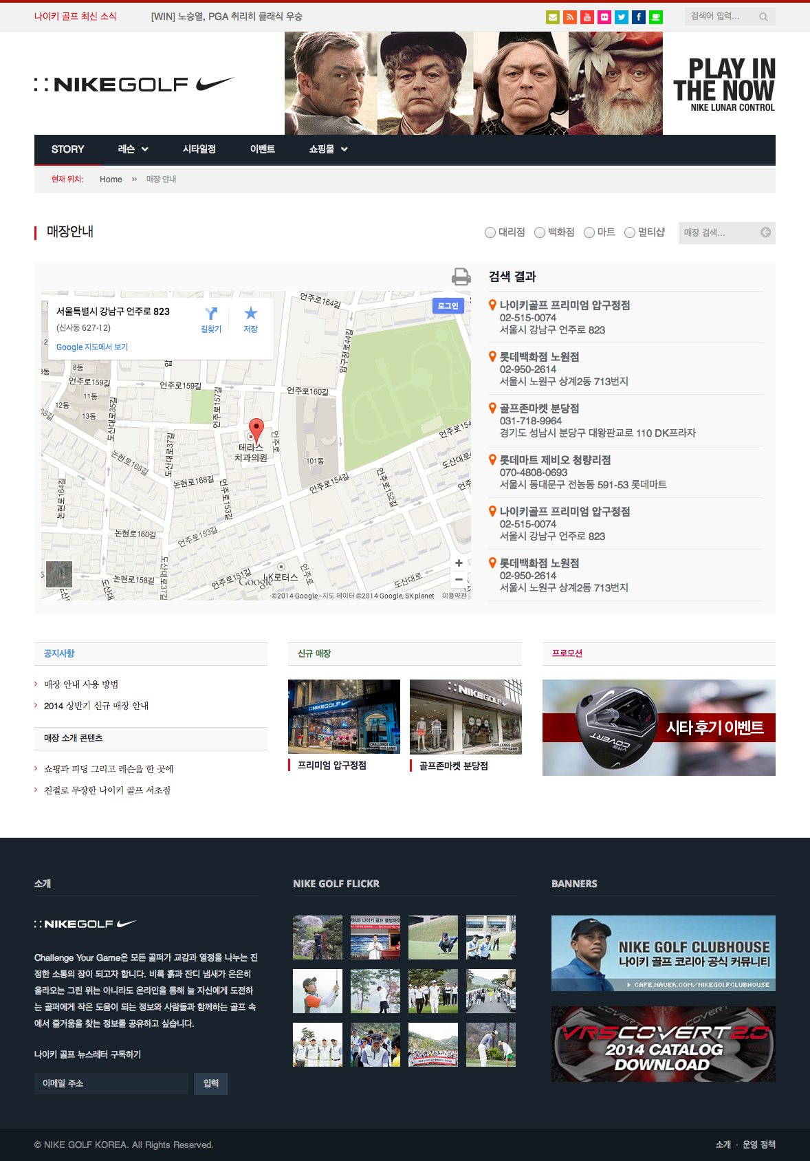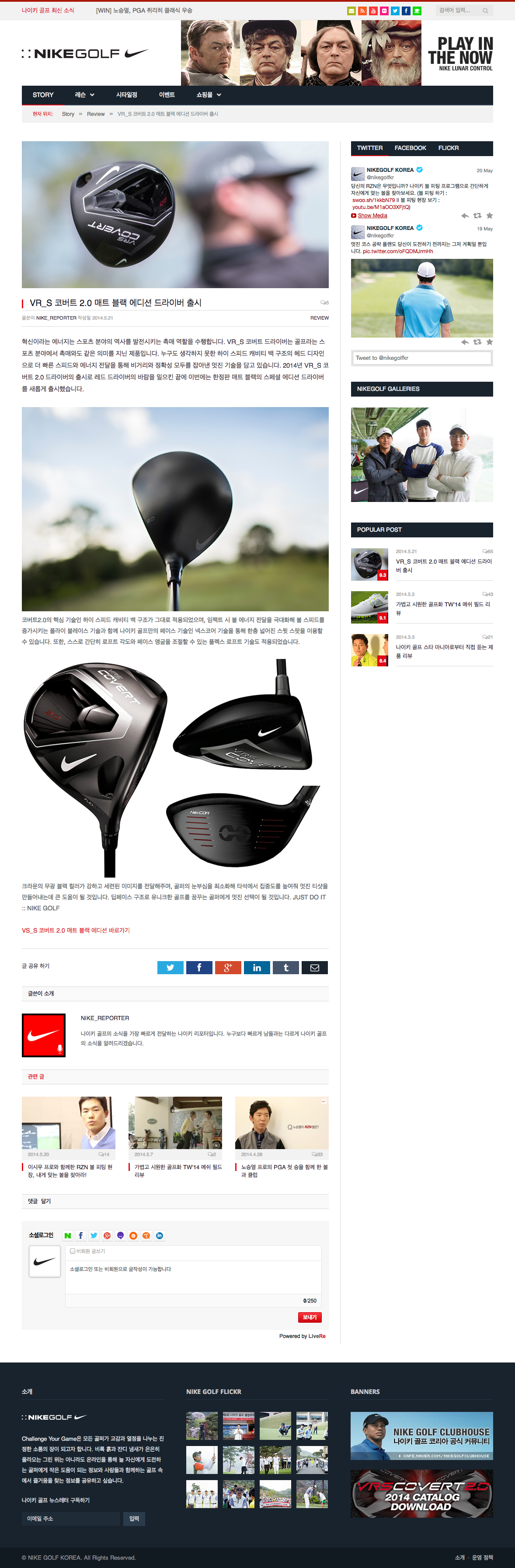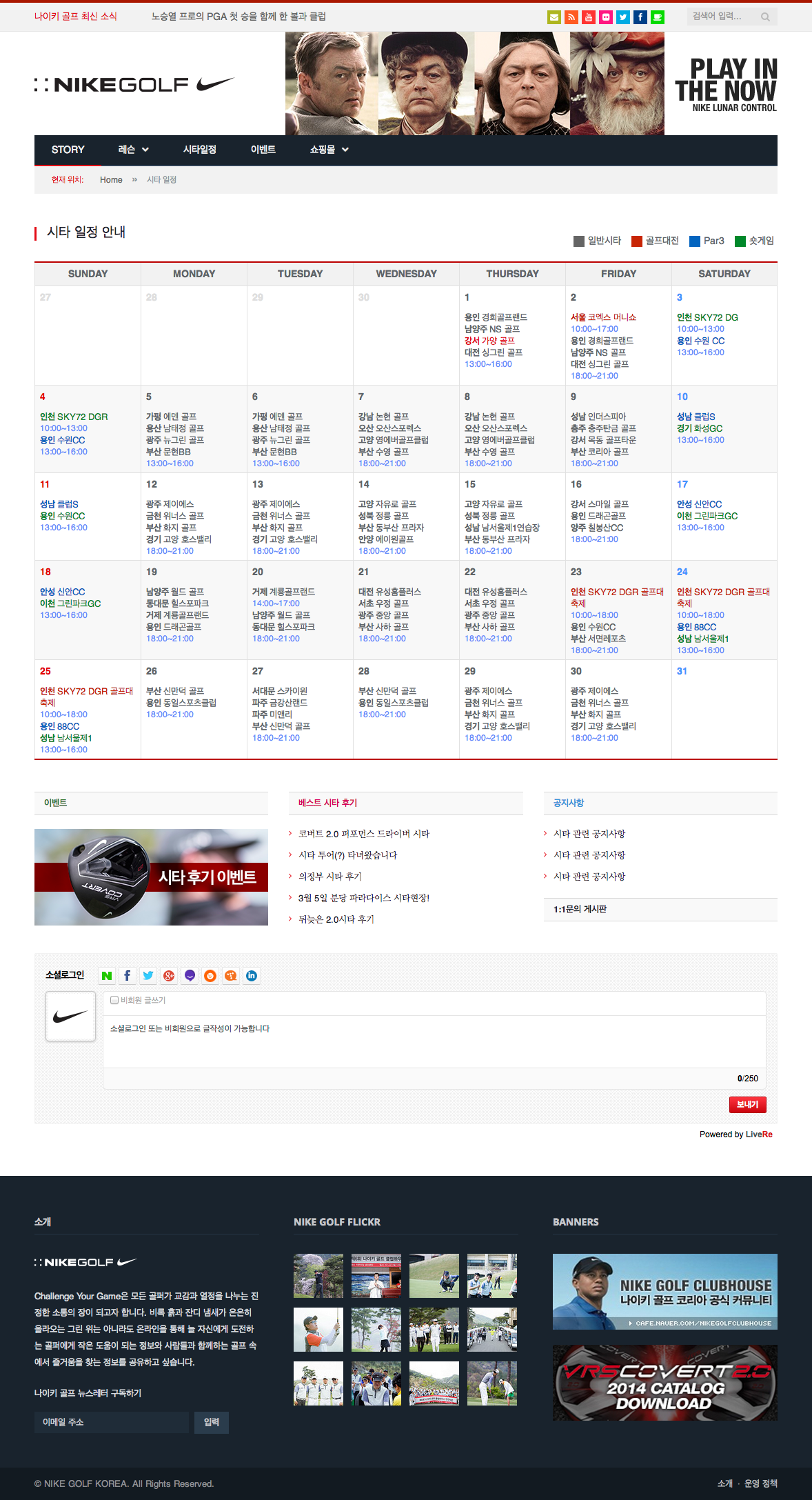나이키 골프 코리아의 블로그, 웹사이트, 쇼핑몰, 이벤트 채널들을 한 곳에 모은 웹사이트 시안